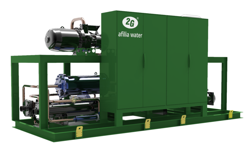 Der Anlage wird Wärme aus einer natürlichen oder industriellen Quelle entzogen und über ein Kältemittel in den Wärmepumpenkreislauf übertragen. Durch Verdichtung steigt die Temperatur des Kältemittels so weit an, dass die Wärme anschließend auf ein höheres Temperaturniveau – z. B. bis 100 °C – abgegeben werden kann.
