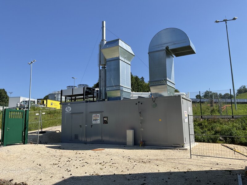 The installation of our agenitor 412 CHP unit forms a central link between stored energy and a demand-oriented energy supply. When needed, the stored gas can be efficiently converted into electricity and heat. In addition, the CHP unit guarantees continuous security of supply. The installed module has an electrical output of 360 kW and a thermal output of 372 kW. The system also features dual operation and can run on both hydrogen and natural gas, enabling more flexible and reliable operation.